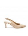 Women's split leather shoe, 100% leather, made in Spain. Opening with side elastics very easy to put on. Rubber sole, 7.5cm heel and 1.5cm platform. Ideal to combine with skirts and dresses.