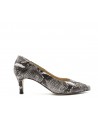 Nude colored shoe for women, microfiber exterior, leather interior, made in Spain. Non-slip rubber sole, 8cm heel. Very comfortable lounge style shoe for everyday use.